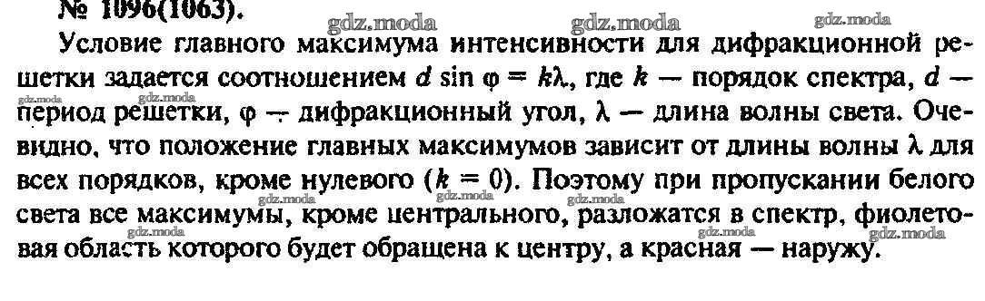 ОТВЕТ на задание № 1096 Задачник по Физике 10-11 класс Рымкевич УМК