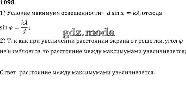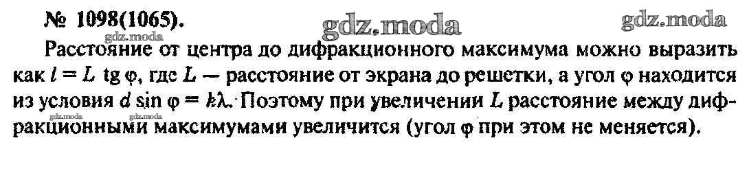 ОТВЕТ на задание № 1098 Задачник по Физике 10-11 класс Рымкевич УМК