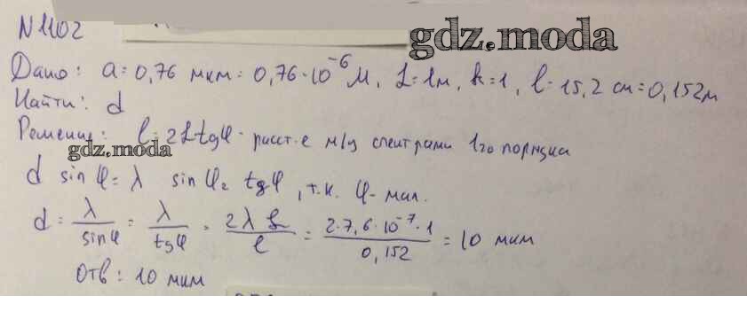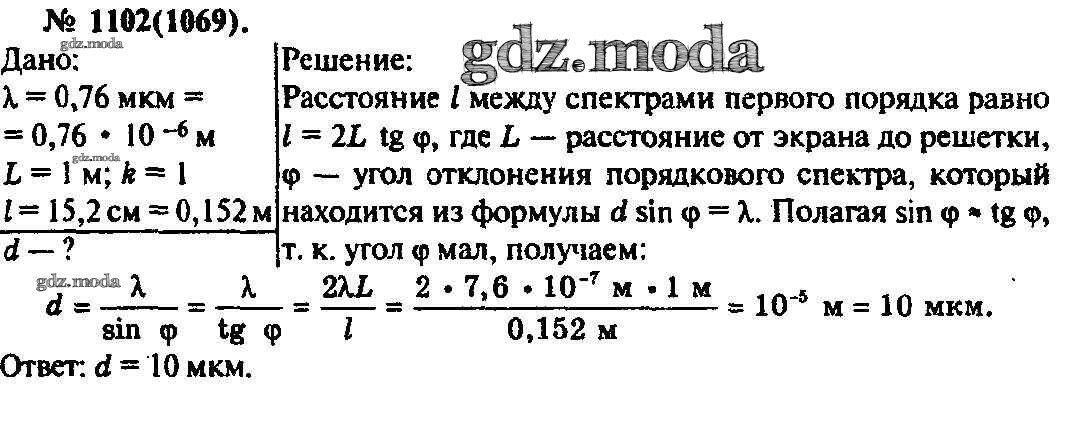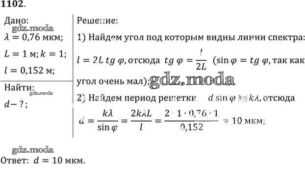 ОТВЕТ на задание № 1102 Задачник по Физике 10-11 класс Рымкевич УМК