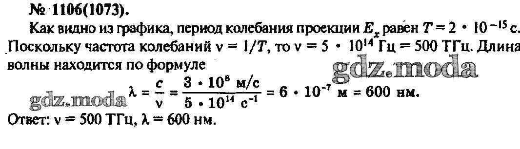 ОТВЕТ на задание № 1106 Задачник по Физике 10-11 класс Рымкевич УМК