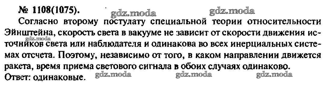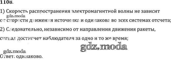 ОТВЕТ на задание № 1108 Задачник по Физике 10-11 класс Рымкевич УМК