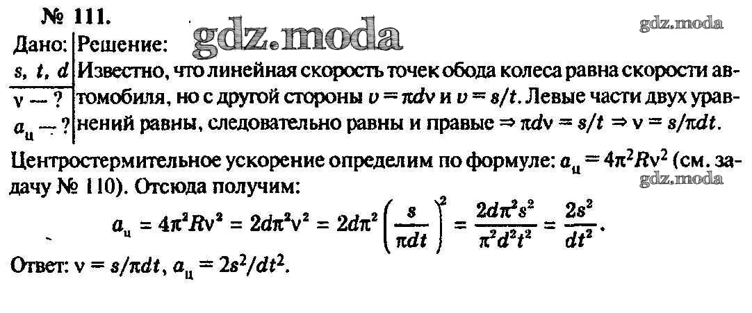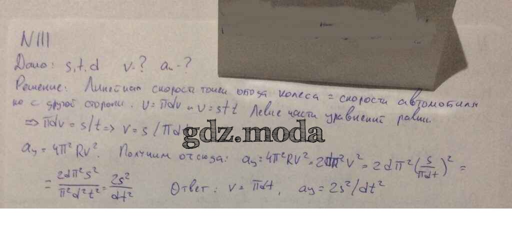 ОТВЕТ на задание № 111 Задачник по Физике 10-11 класс Рымкевич УМК