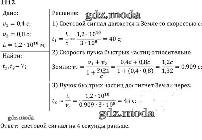 ОТВЕТ на задание № 1112 Задачник по Физике 10-11 класс Рымкевич УМК