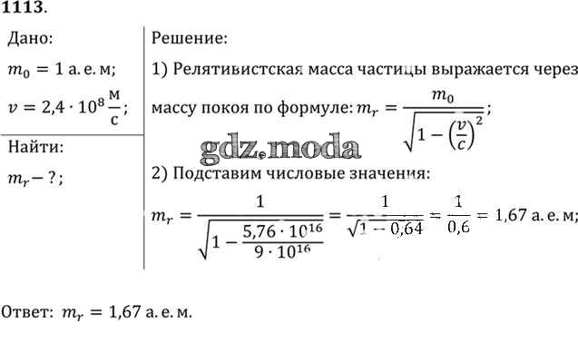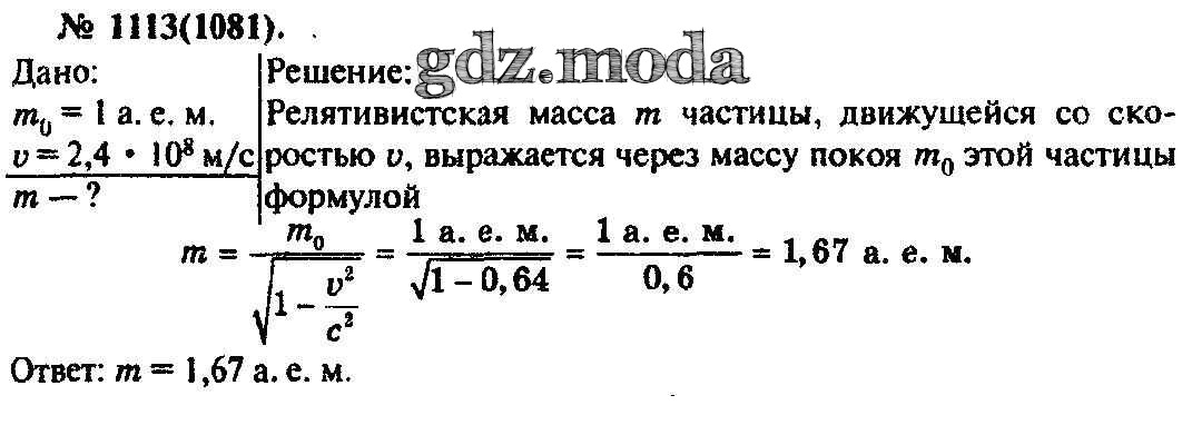 ОТВЕТ на задание № 1113 Задачник по Физике 10-11 класс Рымкевич УМК