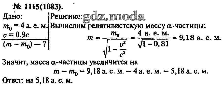 ОТВЕТ на задание № 1115 Задачник по Физике 10-11 класс Рымкевич УМК