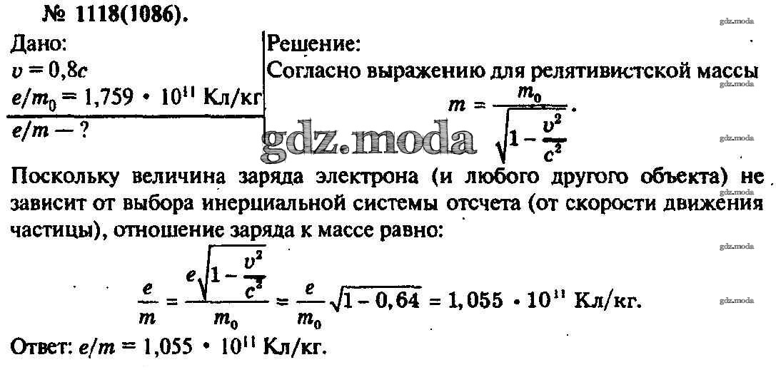 ОТВЕТ на задание № 1118 Задачник по Физике 10-11 класс Рымкевич УМК