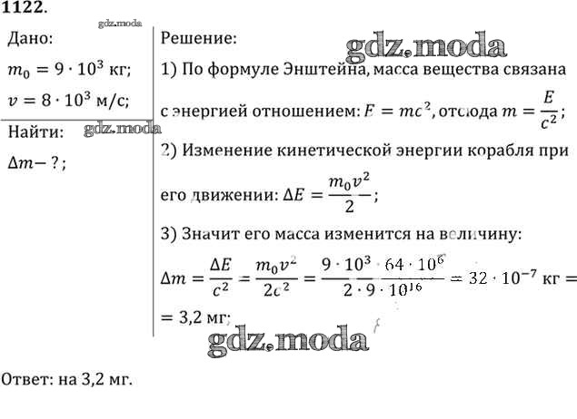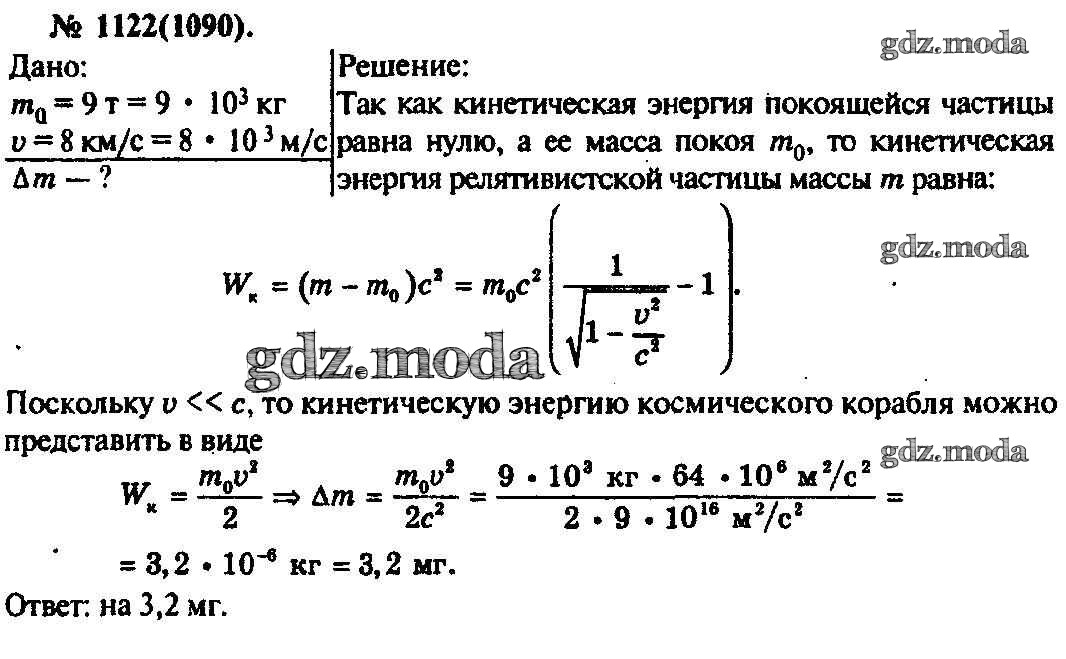 ОТВЕТ на задание № 1122 Задачник по Физике 10-11 класс Рымкевич УМК