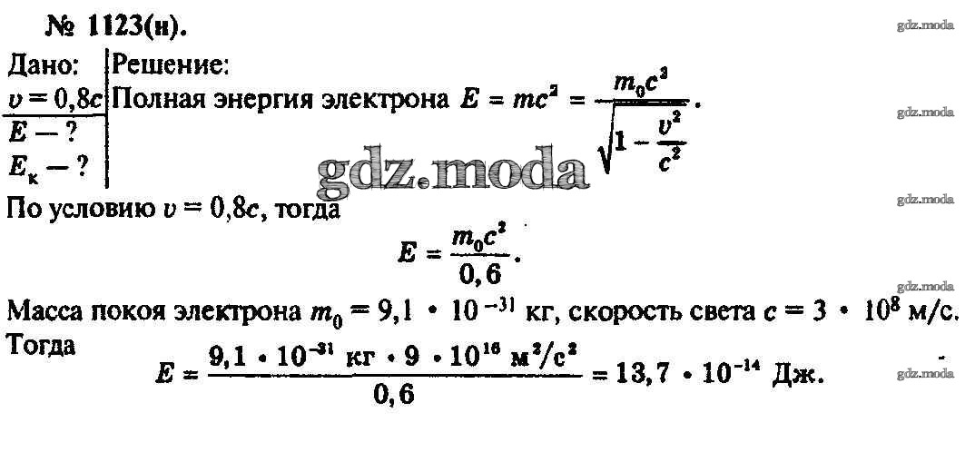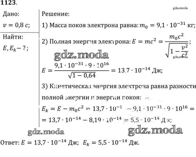 ОТВЕТ на задание № 1123 Задачник по Физике 10-11 класс Рымкевич УМК