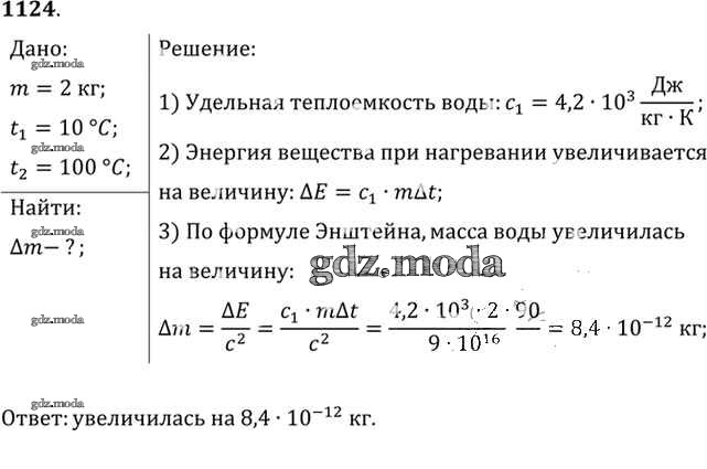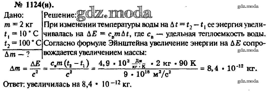 ОТВЕТ на задание № 1124 Задачник по Физике 10-11 класс Рымкевич УМК