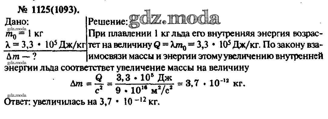 ОТВЕТ на задание № 1125 Задачник по Физике 10-11 класс Рымкевич УМК