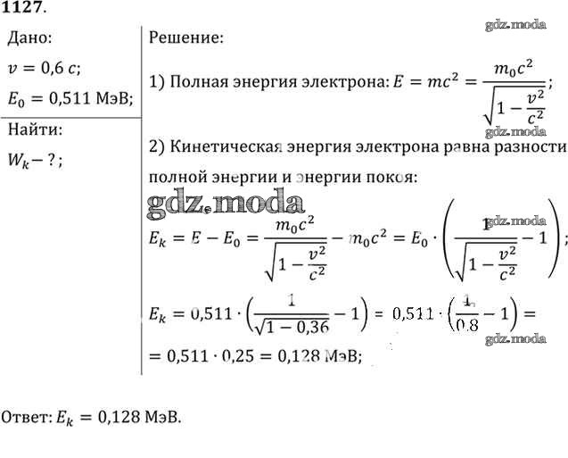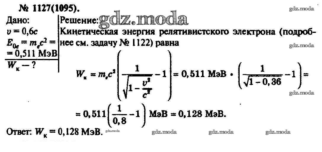 ОТВЕТ на задание № 1127 Задачник по Физике 10-11 класс Рымкевич УМК