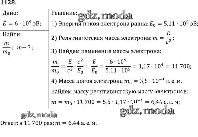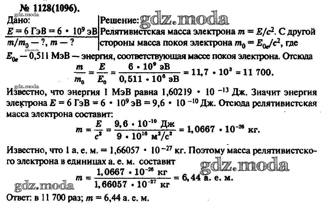 ОТВЕТ на задание № 1128 Задачник по Физике 10-11 класс Рымкевич УМК