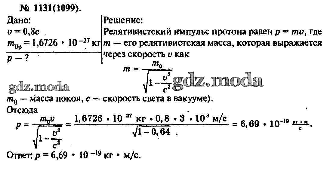 ОТВЕТ на задание № 1131 Задачник по Физике 10-11 класс Рымкевич УМК