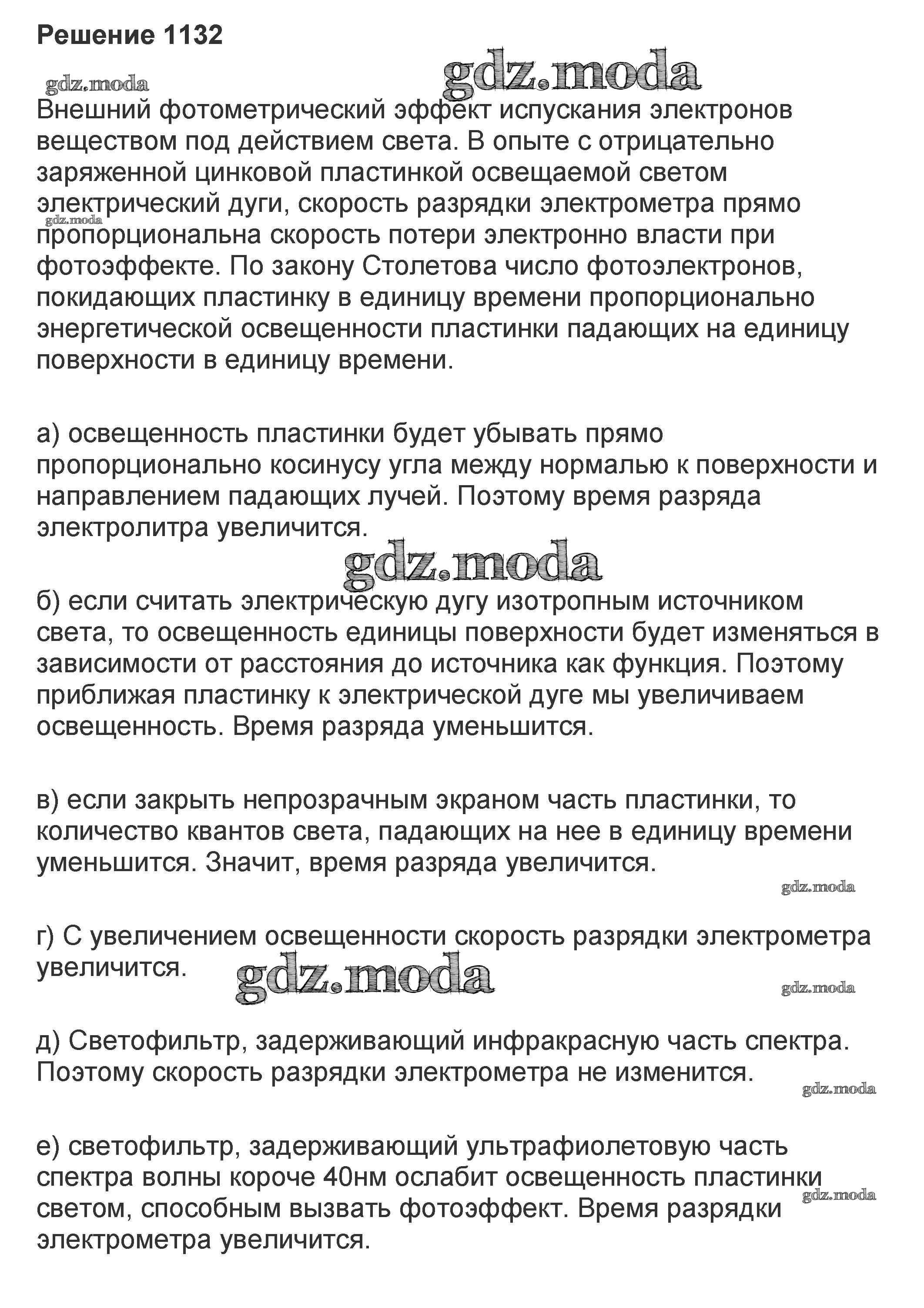 ОТВЕТ на задание № 1132 Задачник по Физике 10-11 класс Рымкевич УМК