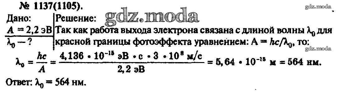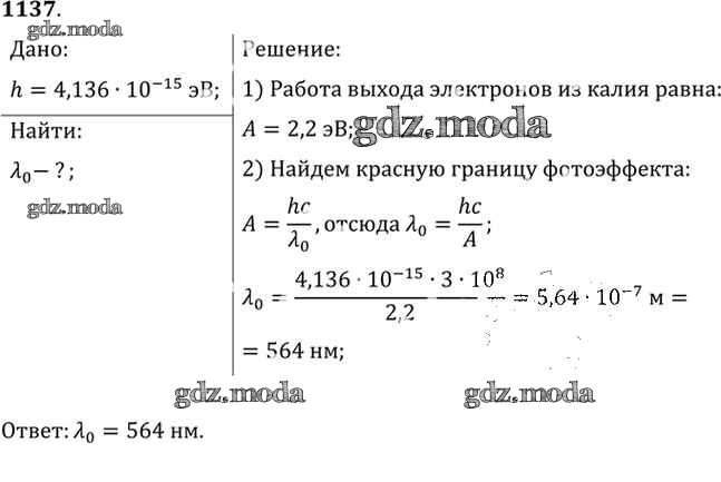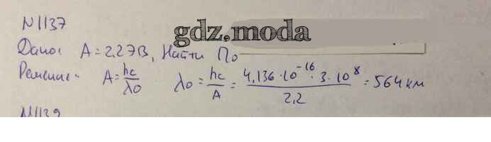 ОТВЕТ на задание № 1137 Задачник по Физике 10-11 класс Рымкевич УМК