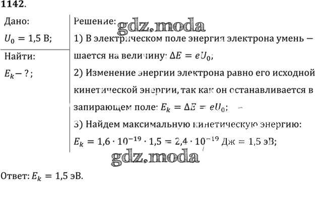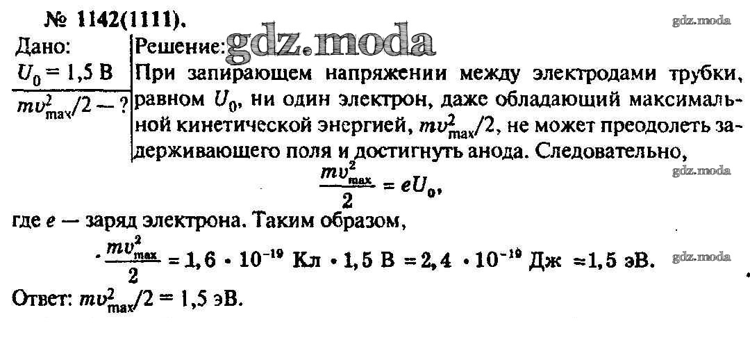 ОТВЕТ на задание № 1142 Задачник по Физике 10-11 класс Рымкевич УМК