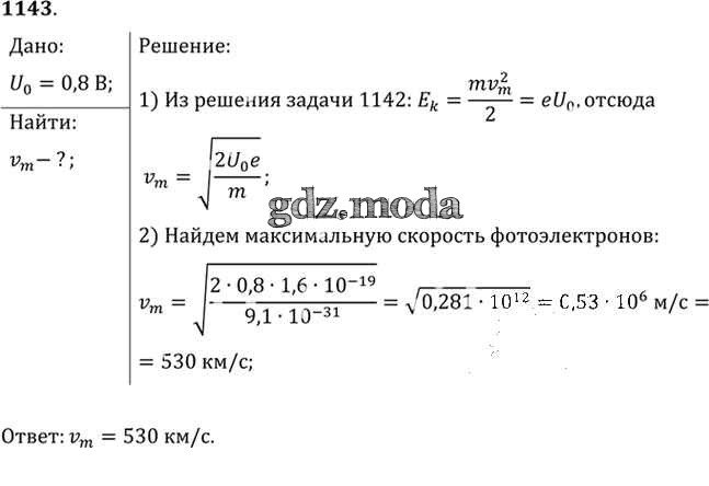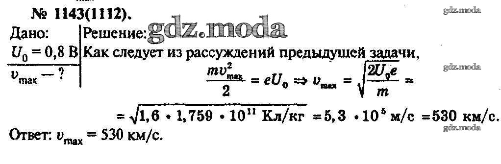 ОТВЕТ на задание № 1143 Задачник по Физике 10-11 класс Рымкевич УМК