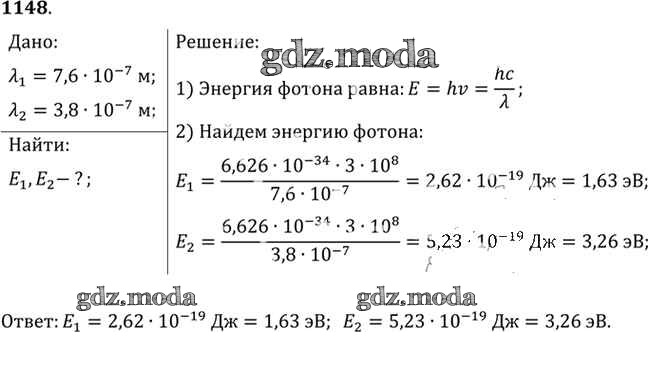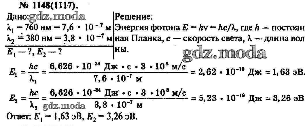 ОТВЕТ на задание № 1148 Задачник по Физике 10-11 класс Рымкевич УМК