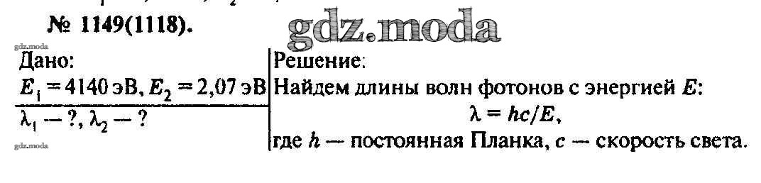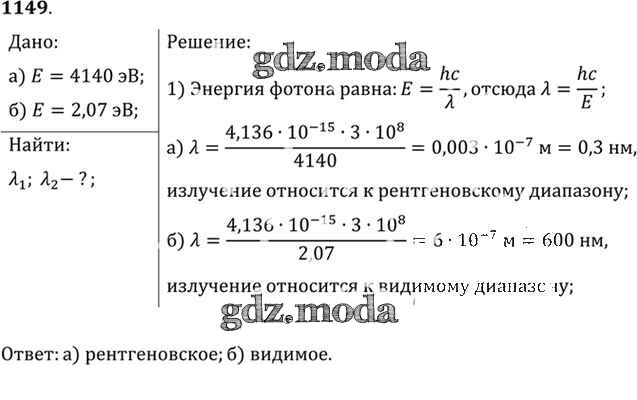 ОТВЕТ на задание № 1149 Задачник по Физике 10-11 класс Рымкевич УМК
