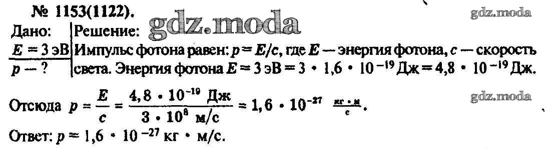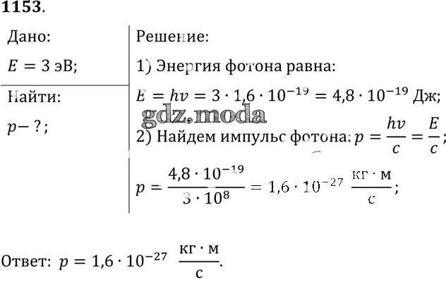 ОТВЕТ на задание № 1153 Задачник по Физике 10-11 класс Рымкевич УМК