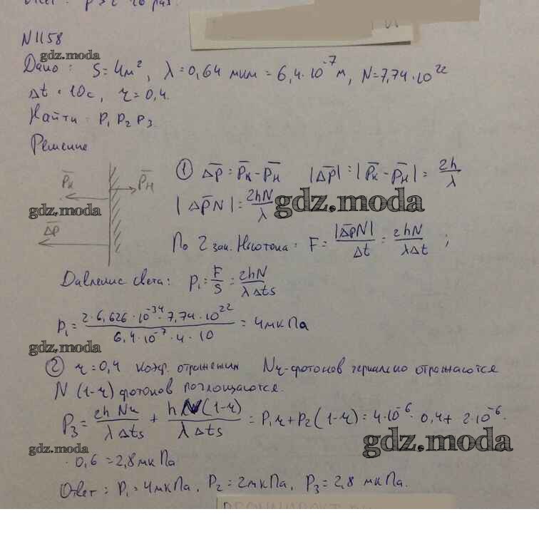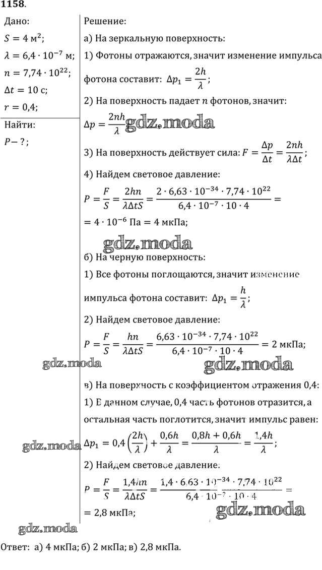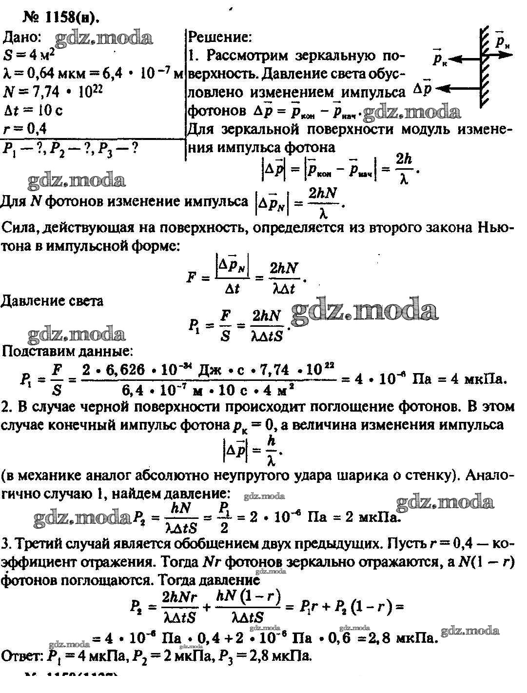 ОТВЕТ на задание № 1158 Задачник по Физике 10-11 класс Рымкевич УМК