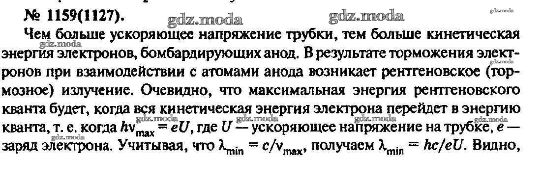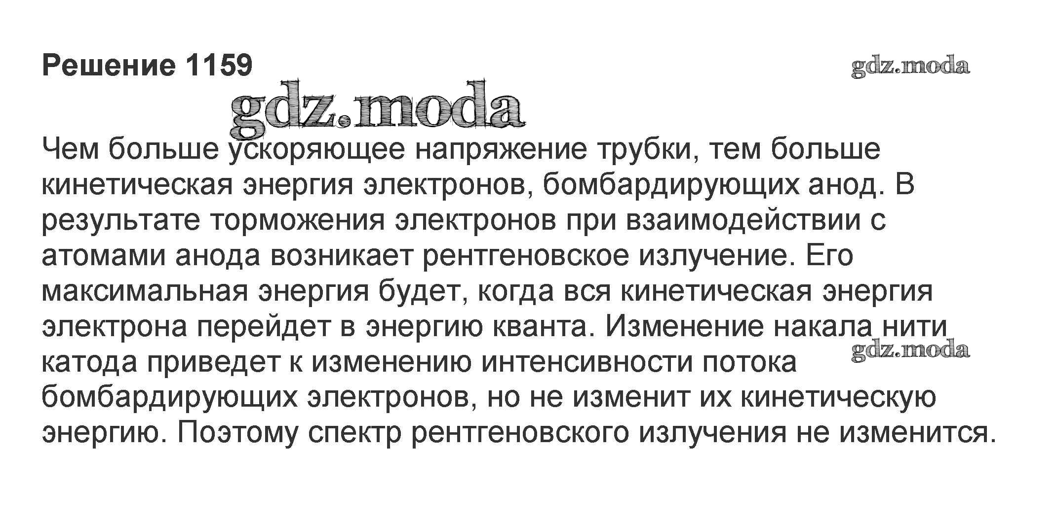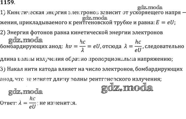 ОТВЕТ на задание № 1159 Задачник по Физике 10-11 класс Рымкевич УМК