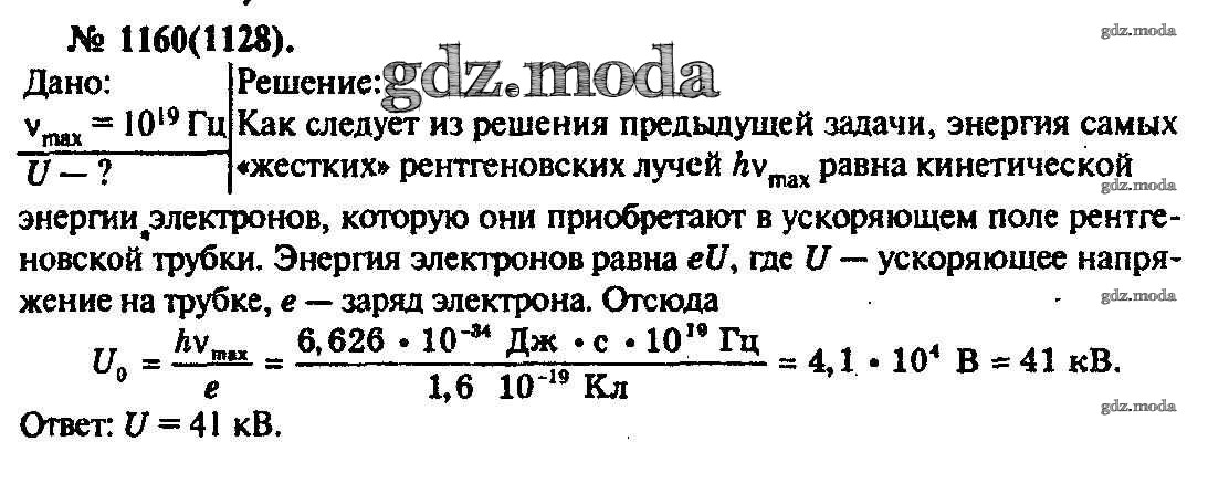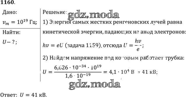 ОТВЕТ на задание № 1160 Задачник по Физике 10-11 класс Рымкевич УМК