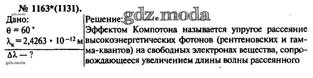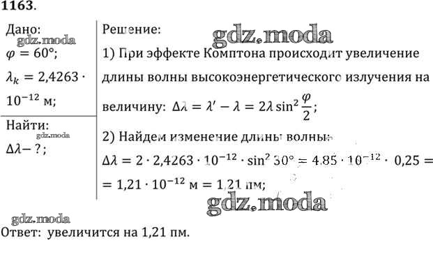 ОТВЕТ на задание № 1163 Задачник по Физике 10-11 класс Рымкевич УМК