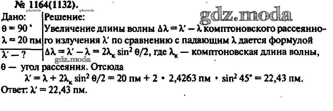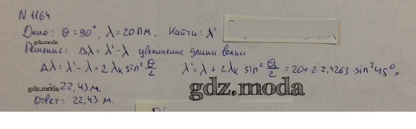 ОТВЕТ на задание № 1164 Задачник по Физике 10-11 класс Рымкевич УМК