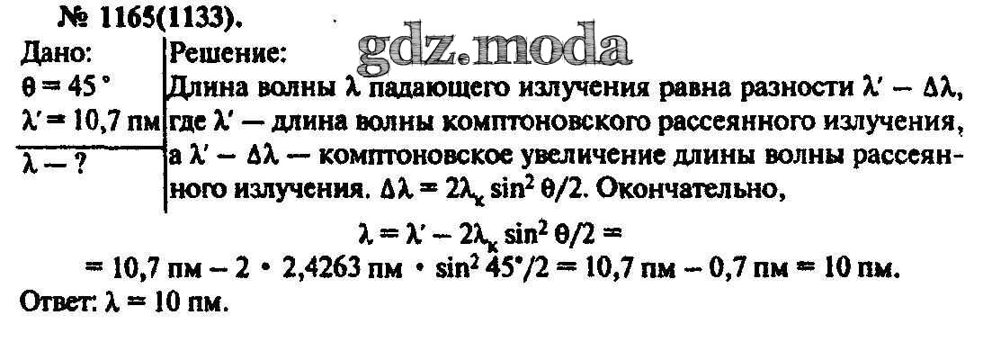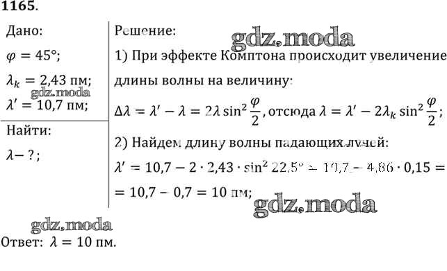 ОТВЕТ на задание № 1165 Задачник по Физике 10-11 класс Рымкевич УМК