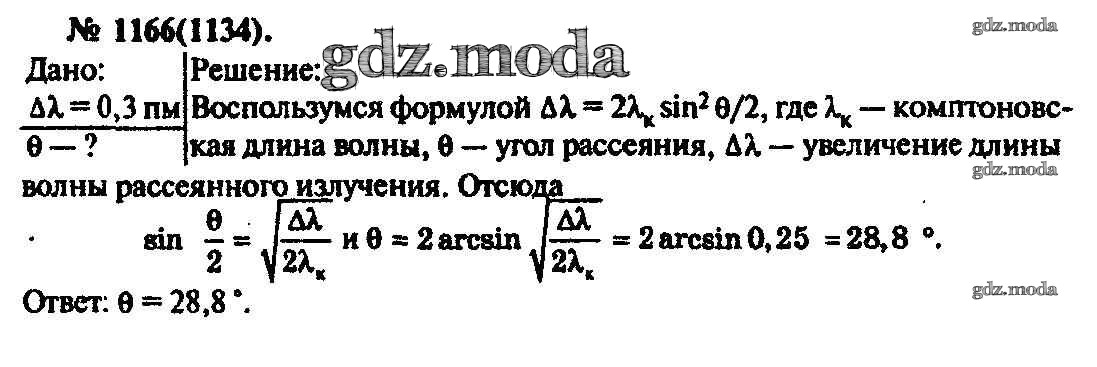 ОТВЕТ на задание № 1166 Задачник по Физике 10-11 класс Рымкевич УМК