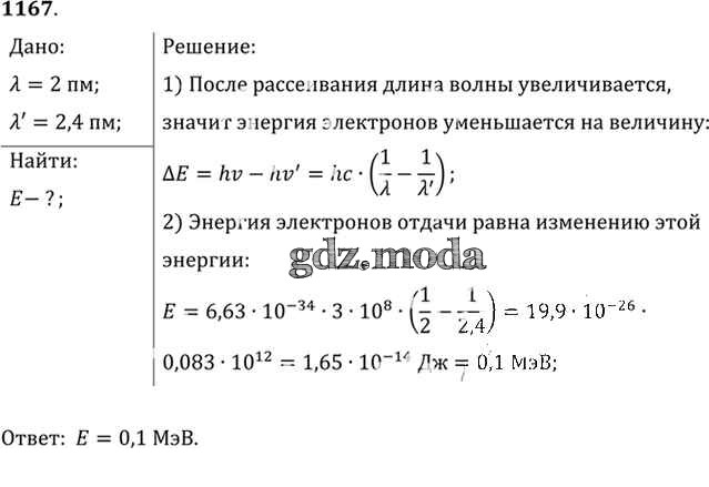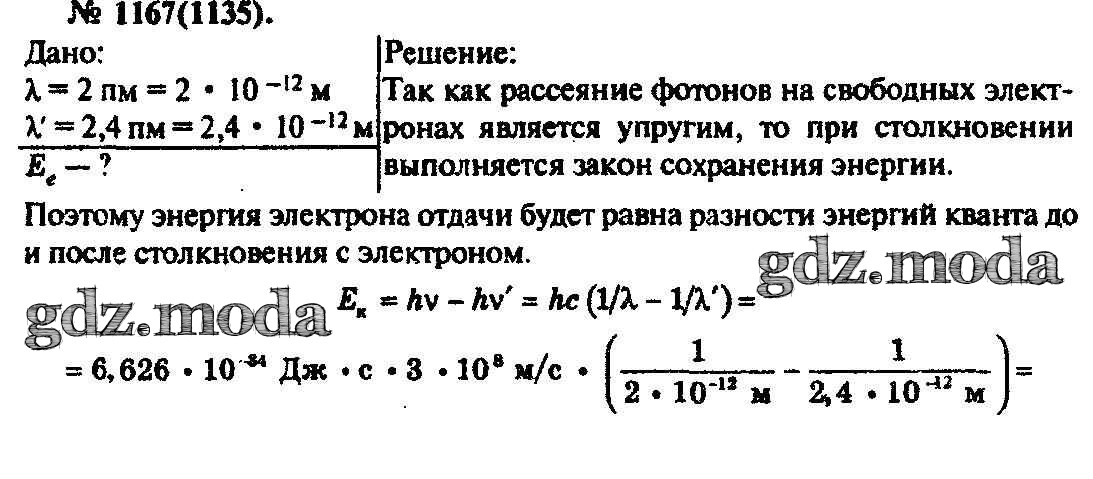 ОТВЕТ на задание № 1167 Задачник по Физике 10-11 класс Рымкевич УМК
