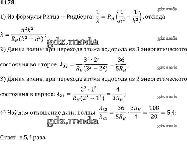 ОТВЕТ на задание № 1178 Задачник по Физике 10-11 класс Рымкевич УМК