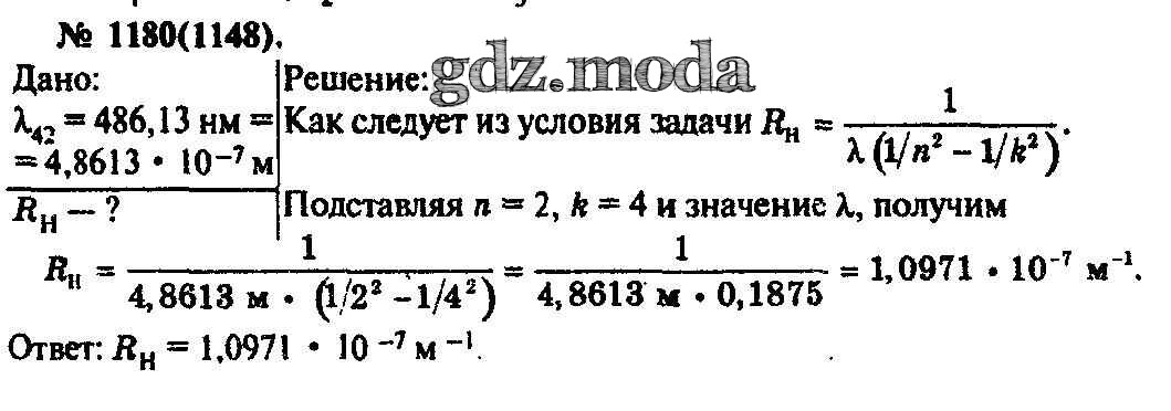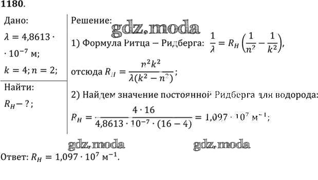 ОТВЕТ на задание № 1180 Задачник по Физике 10-11 класс Рымкевич УМК