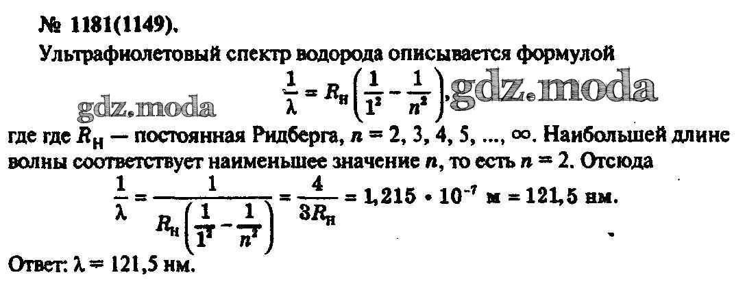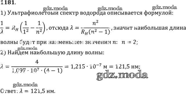 ОТВЕТ на задание № 1181 Задачник по Физике 10-11 класс Рымкевич УМК