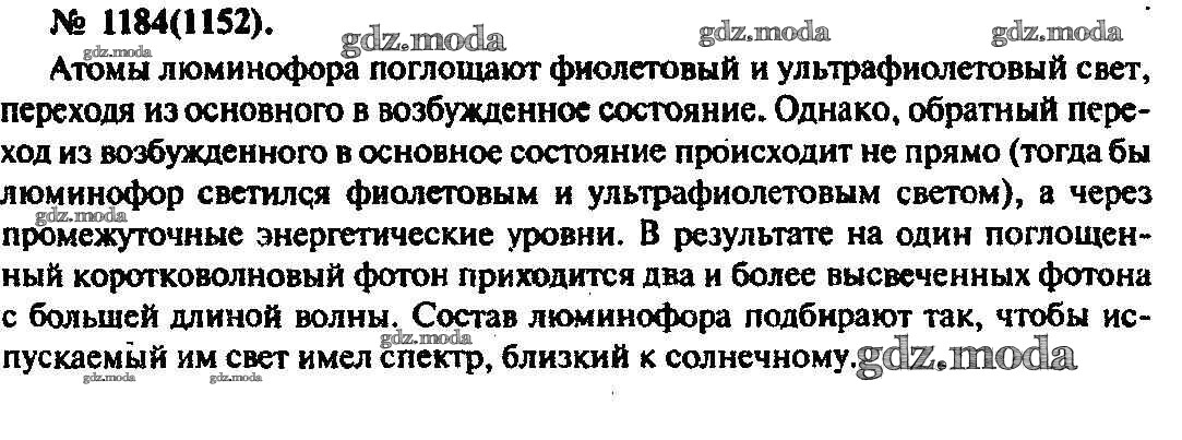 ОТВЕТ на задание № 1184 Задачник по Физике 10-11 класс Рымкевич УМК