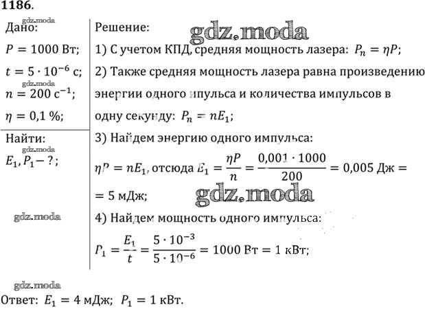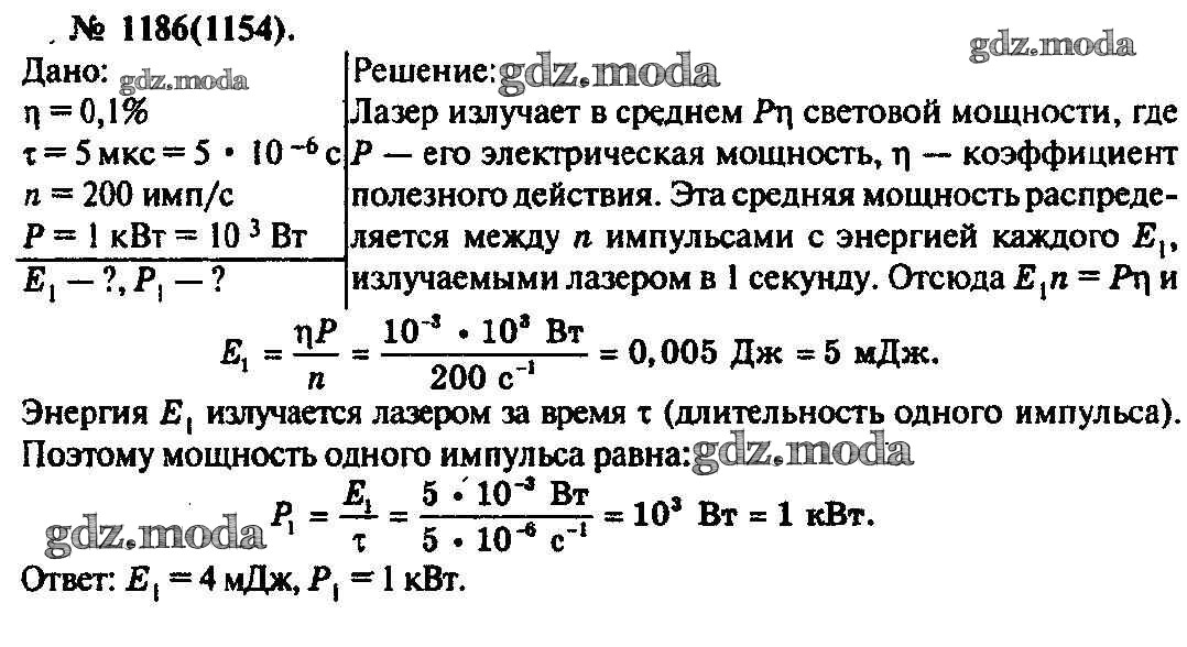 ОТВЕТ на задание № 1186 Задачник по Физике 10-11 класс Рымкевич УМК