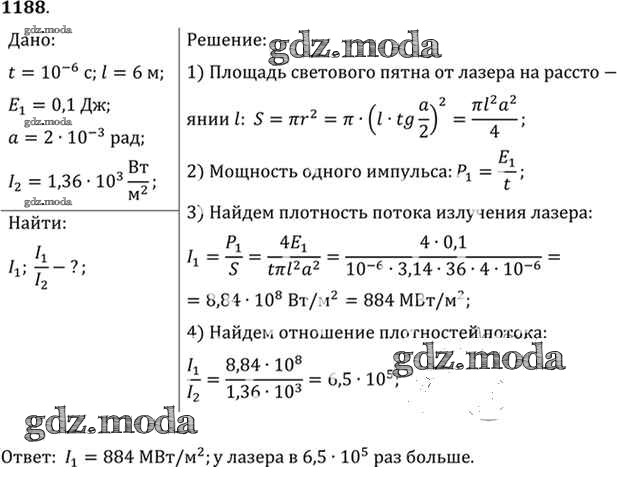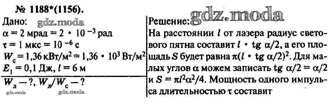 ОТВЕТ на задание № 1188 Задачник по Физике 10-11 класс Рымкевич УМК