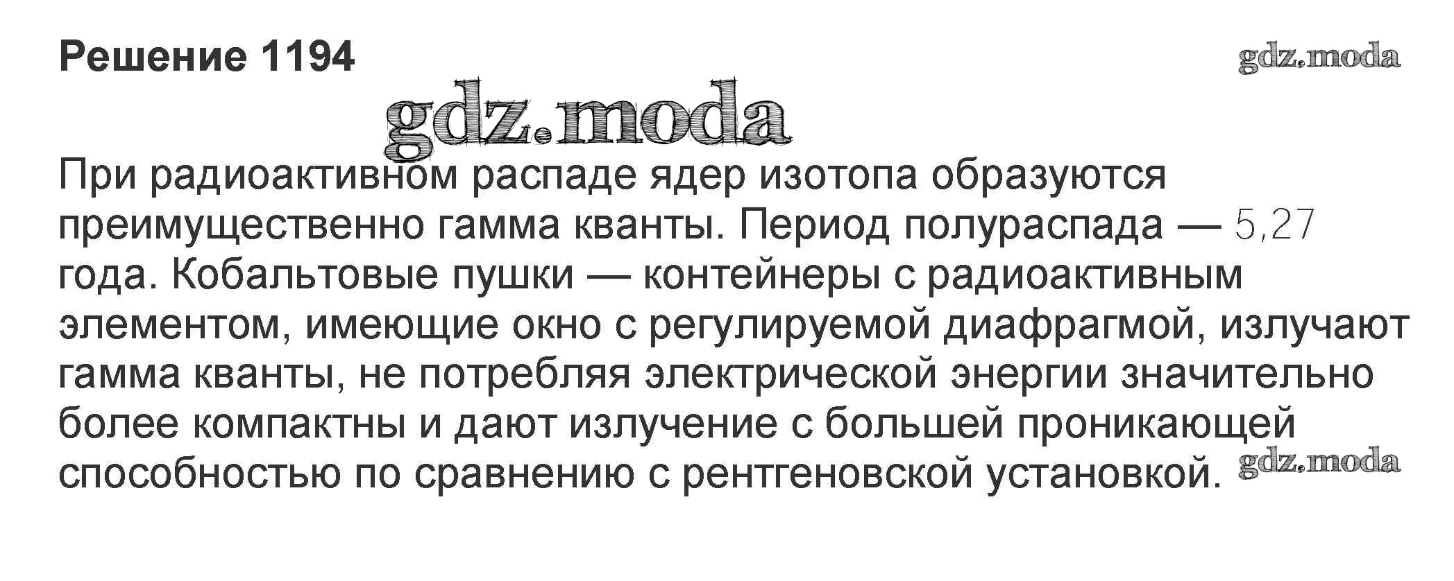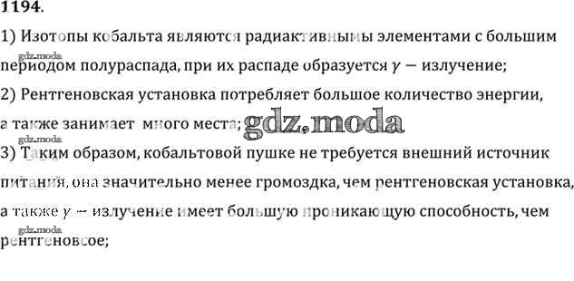 ОТВЕТ на задание № 1194 Задачник по Физике 10-11 класс Рымкевич УМК