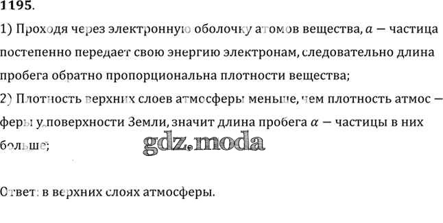 ОТВЕТ на задание № 1195 Задачник по Физике 10-11 класс Рымкевич УМК