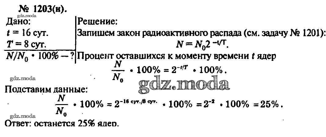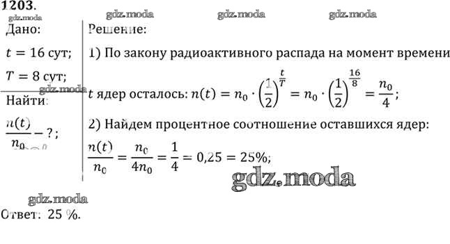 ОТВЕТ на задание № 1203 Задачник по Физике 10-11 класс Рымкевич УМК