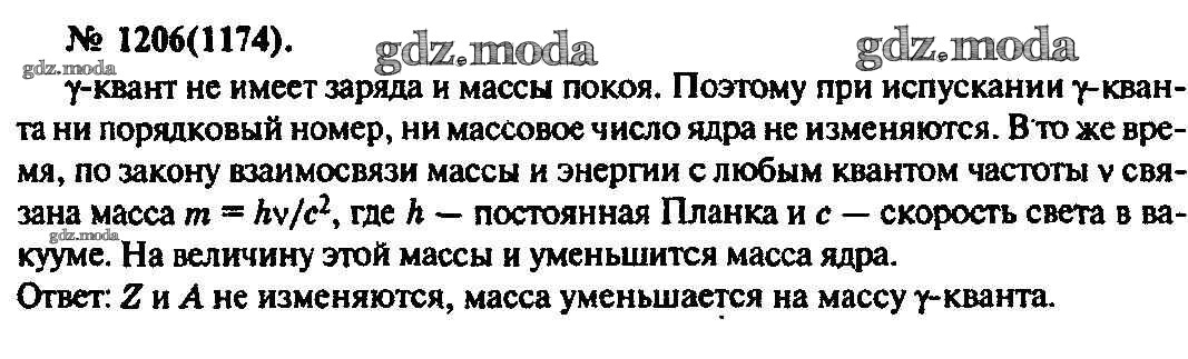 ОТВЕТ на задание № 1206 Задачник по Физике 10-11 класс Рымкевич УМК