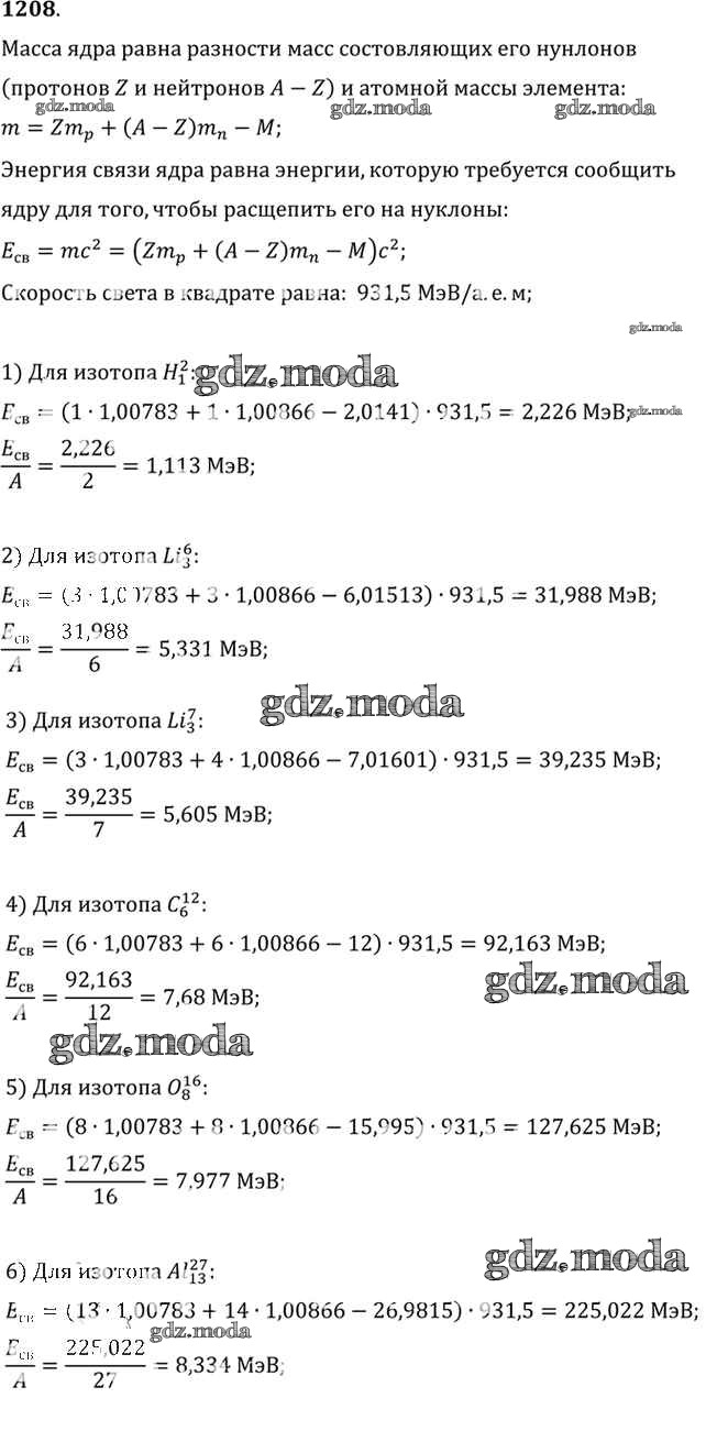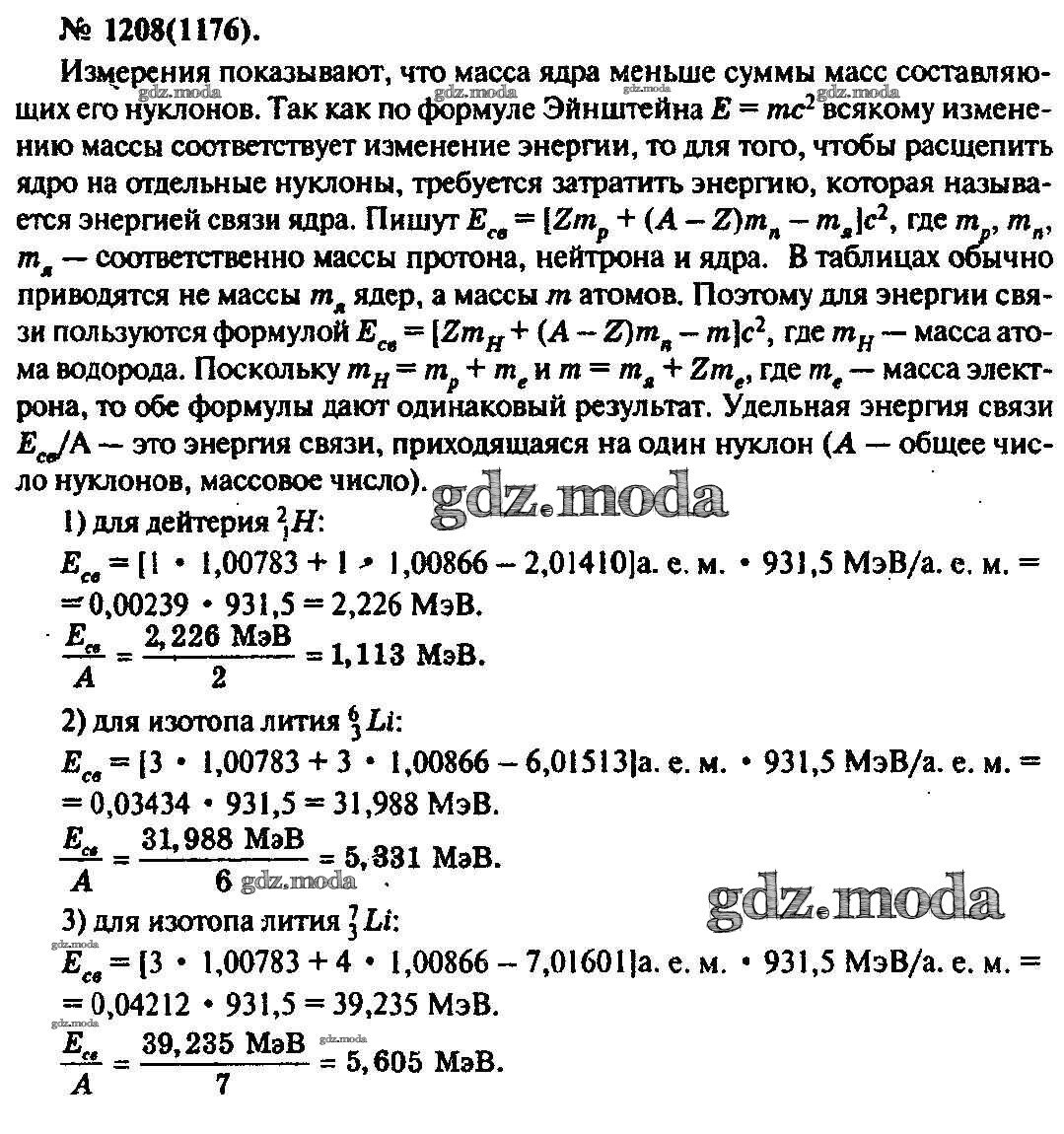 ОТВЕТ на задание № 1208 Задачник по Физике 10-11 класс Рымкевич УМК