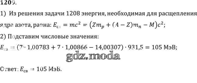 ОТВЕТ на задание № 1209 Задачник по Физике 10-11 класс Рымкевич УМК