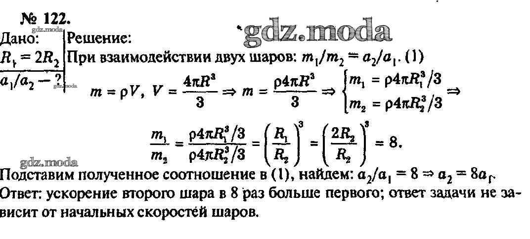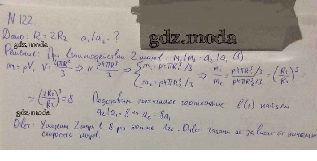 ОТВЕТ на задание № 122 Задачник по Физике 10-11 класс Рымкевич УМК