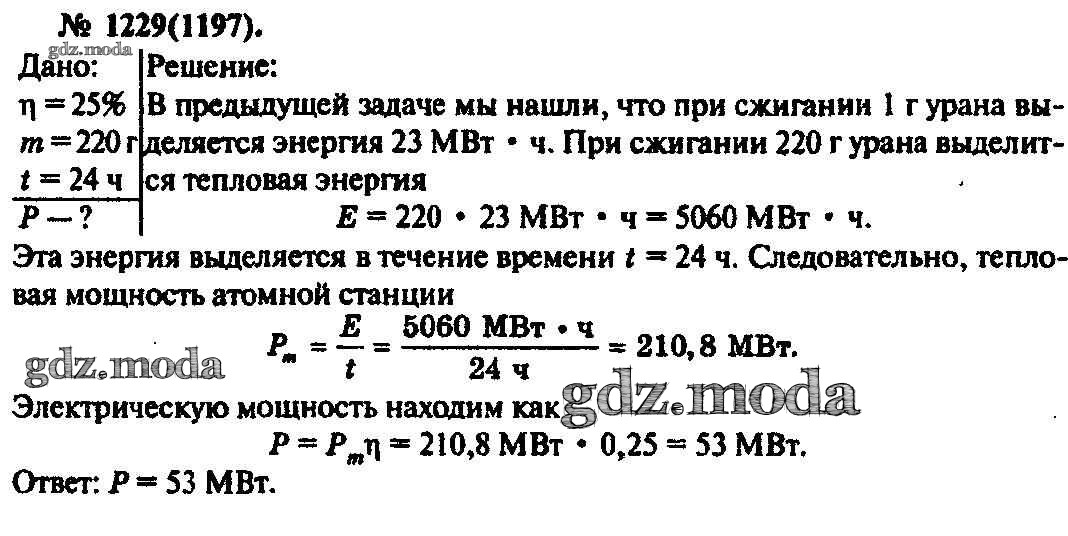 ОТВЕТ на задание № 1229 Задачник по Физике 10-11 класс Рымкевич УМК
