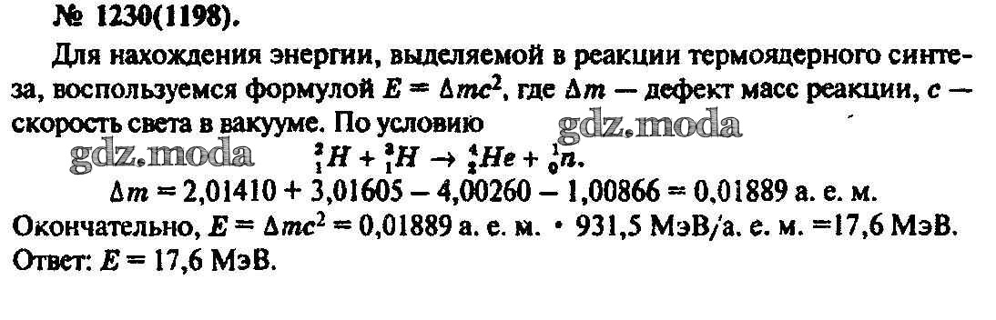 ОТВЕТ на задание № 1230 Задачник по Физике 10-11 класс Рымкевич УМК