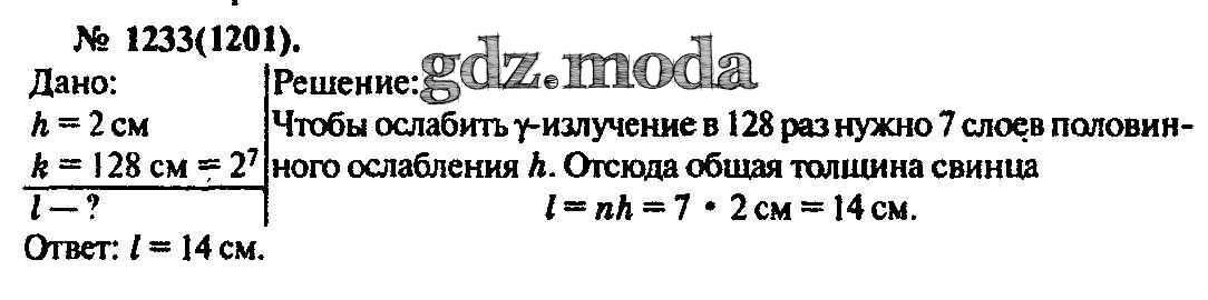 ОТВЕТ на задание № 1233 Задачник по Физике 10-11 класс Рымкевич УМК