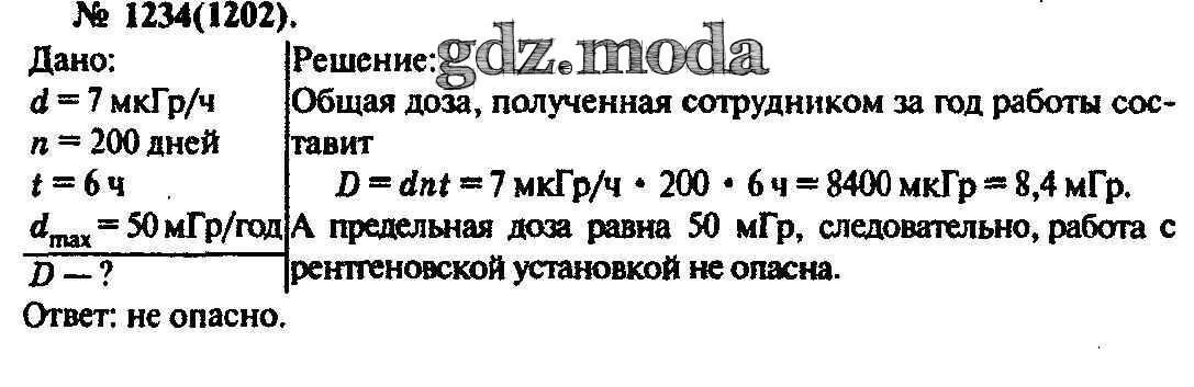 ОТВЕТ на задание № 1234 Задачник по Физике 10-11 класс Рымкевич УМК