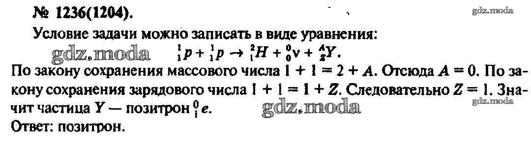 ОТВЕТ на задание № 1236 Задачник по Физике 10-11 класс Рымкевич УМК